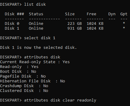 لێرەدا باس لە رێگایەک دەکەین بۆ ئەوەی ئەو میمۆری یان فلاش میمۆریانە کە قوفڵ کراون و ناتوانین دەستکاریان بکەین واتا ناتوانین فۆرماتیان بکەین یان فایل زیاد و کەم بکەین لە ناویدا قوفڵەکەیان لەسەر لابەرین یان چۆن قوفڵیان بکەین بەم شێوەیە سەرەتا ( CMD ) بە شێوەی ( administrator ) بکەوە پاشان بنووسە ( Diskpart ) پاشان بنووسە ( list disk ) بۆ ئەوەی لستی میمۆریەکان ببینیت و هەڵیان بژێریت پاش بینینی لیستەکە کام میمۆری ئارەزوو بکەیت هەڵیبژێرە بەم شێوەیە ( Select Disk X ) X بریتیە لە ژمارەی دسکەکە پاشان بۆ قوفڵ کردنی میمۆری بنووسە ( attributes volume set readonly ) بۆ لابردنی قەفڵ بنووسە ( attributes disk clear readonly )