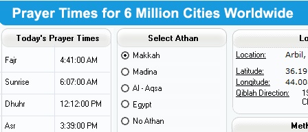 بەرنامەی ( Islamic Finder Athan ) بەرنامەیەکی زۆر چاکە بۆ زانینی کاتەکانی بانگ کە بەرنامەکە بە زۆترین زمانەکانی جیهان دارێژراوەو کە دەتوانێت لە کاتی بانگەکاندا بانگ بدات بە دەنگی چەند بانگ بێژێکی جیهانی هەروەها خشتەی بانگ دانی بە مانگ و ساڵ تێدایە و لەگەڵ رۆژمێری هیجری و میلادی لەگەڵ چەند بەشێکی گرینگی تری یەم بەرنامە.